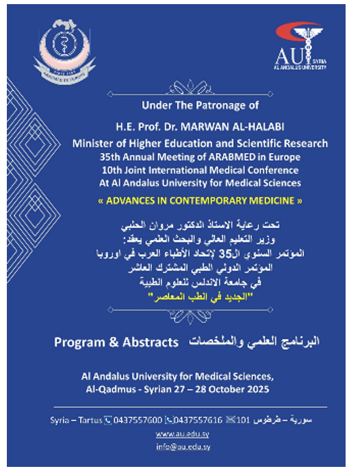عقدت في جامعة الاندلس للعلوم الطبية في القدموس المؤتمر السنوي ال 35 لاتحاد الأطباء العرب في أوروبا في عام 2025 والمؤتمر الدولي المشترك العاشر تحت شعار " الجديد في الطب المعاصر"في الفترة ما بين 27 - 28 اوكتوبر 2025، والتي استضافتها جامعة الأندلس الخاصة